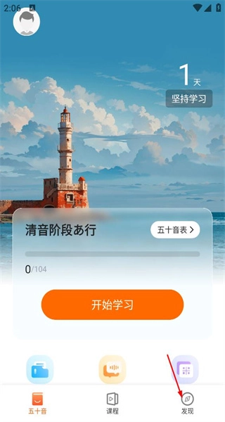1、启动软件后,进入主页面,查看清音阶段的学习进度,接着点击底部的“发现”选项,进入对应的页面。