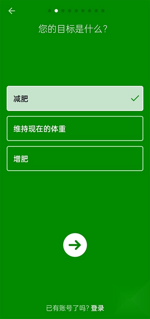 1、首先打开fatsecret安卓中文版,选择你的目标,这里以减肥为例;