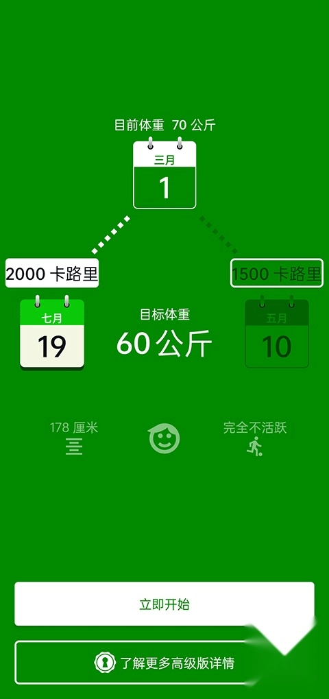 2、填写你的身高、体重、运动量等信息,立即开始;