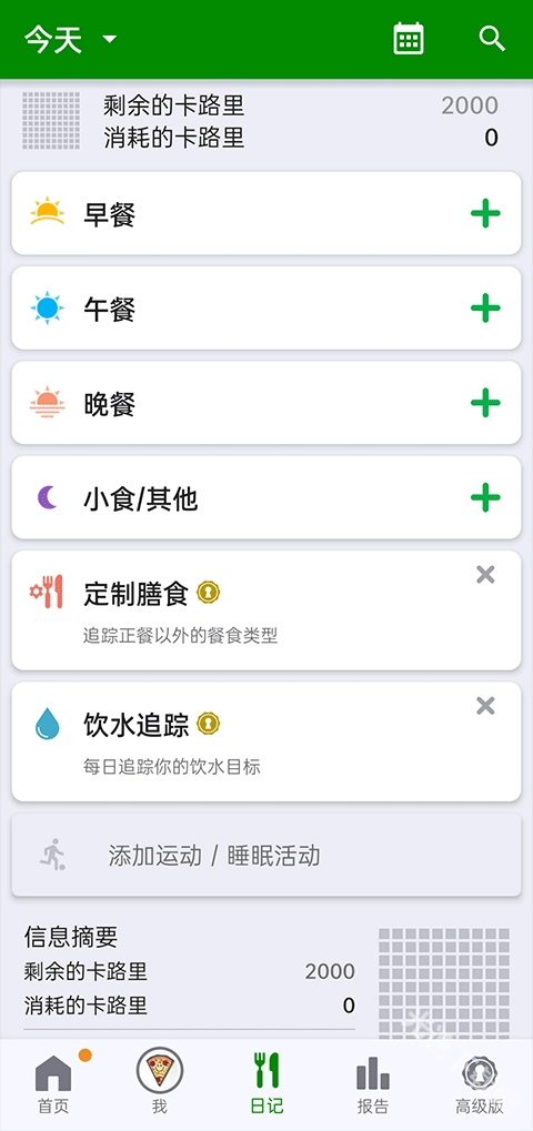 3、每天自动计算汇总卡路里数据,结合减肥计划,为饮食健身提供数据参考。