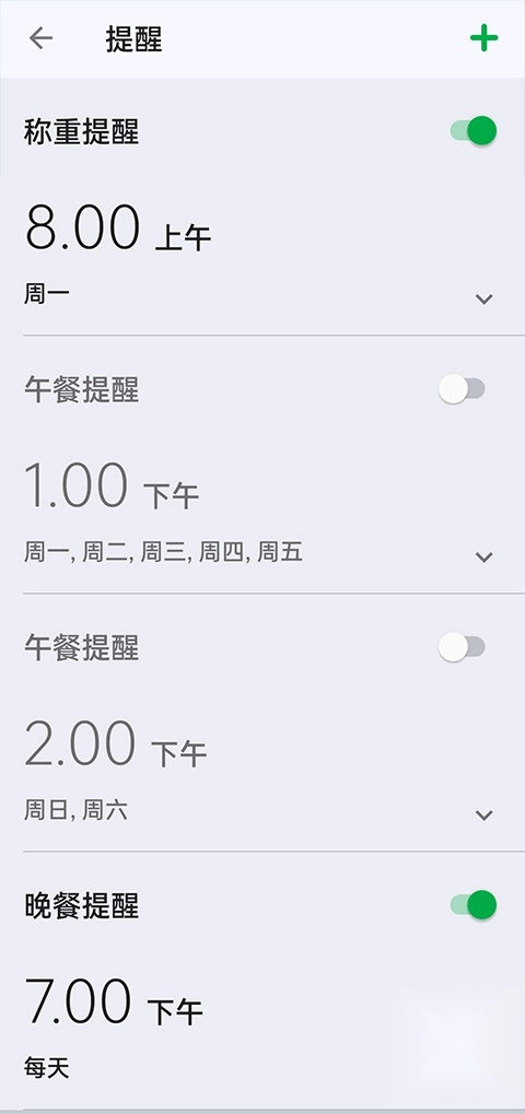 7、设置称重、早、午、晚餐提醒时间;
