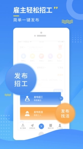 2.一键发布招工与找活信息,便捷高效,堪称招聘者的贴心利器。有了它,找工人从此变得简单轻松,既是工人朋友们的福利,也是招聘者的得力助手。