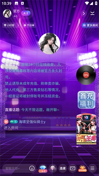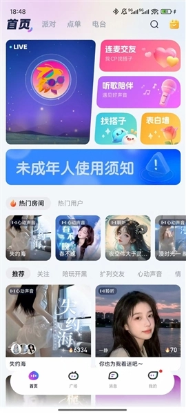 4、在这里会刷到系统推送的一些房间,你可以加入这些房间,和其他用户进行互动交流。
