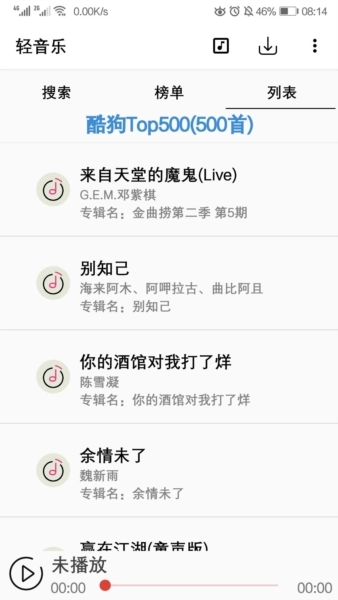 歌单解析后的列表也会展示在歌单列表(第三个标签“列表”),操作方式与之前相同。