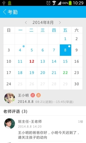 ·考勤管理:实时掌握学生迟到、早退、旷课、提前离校、留校等情况;