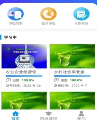 用户能够在课程列表里浏览各类农业相关的课程内容,便于挑选课程进行学习。