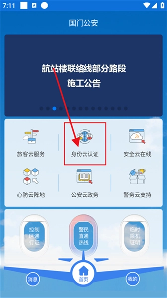 4、登录成功后,在首页找到并点击【身份云认证】选项,系统会自动引导您进入身份认证页面。(具体位置可参考下图)