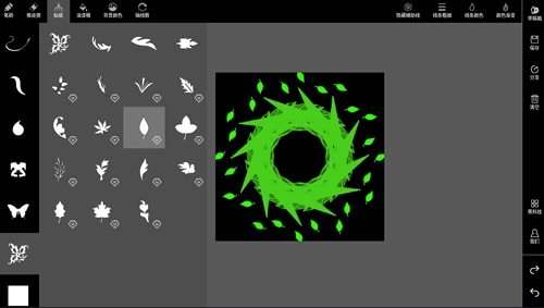 5左上角还有个贴纸功能,大家可以在自己画好的图案上添加贴纸,贴纸的颜色会和你使用的画笔颜色保持一致哦。