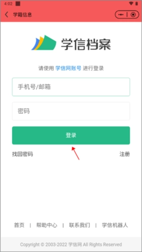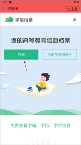 2、页面会自动跳转到学信网界面,此时点击登录按钮即可。
