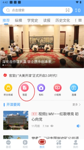 1、打开大美开滦软件后,点击“首页”的答题选项。