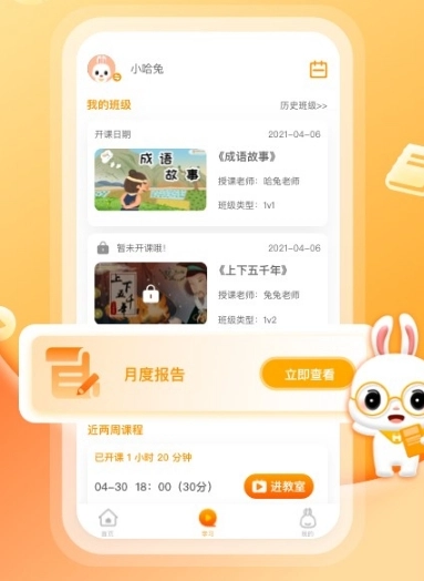 哈兔中文凭借便捷的移动端功能,在教育领域掀起新潮流。它不仅支持孩子灵活规划学习时间,还提供个性化的课堂考勤管理与课时记录服务;同时,家长也能实时了解孩子的学习进度和课堂表现。此外,平台还设有积分兑换课时的激励机制,让学习过程兼具趣味性与挑战性。