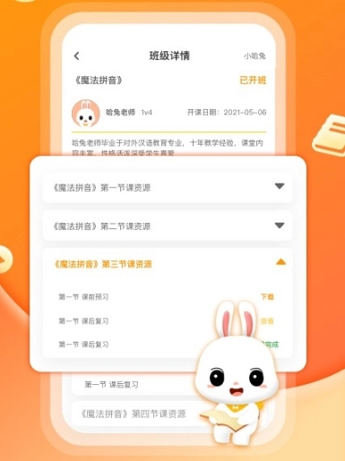 哈兔中文是一个全面、便捷且富有创新的学习平台,它将课堂搬至指尖,让孩子在家就能享受到优秀的教育资源。从考勤管理到个性化课程,再到贴心的教师服务,哈兔致力于为每一个孩子创造一个温馨、高效的学习环境。现在就加入哈兔,让孩子的中文学习之路更加精彩纷呈,迈向更高的成就!
