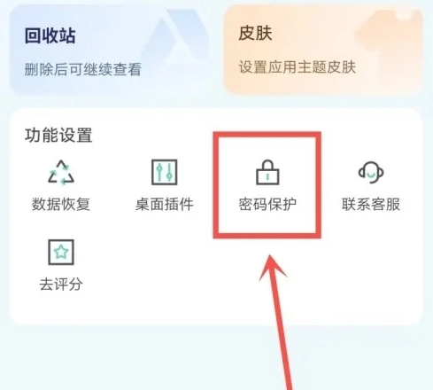 2、进入我的页面,点击【密码保护】。