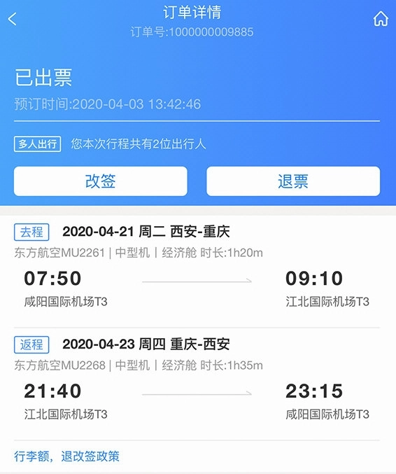 在“我的行程”页面可查看所有订单,并且支持对订单进行修改和退订操作。