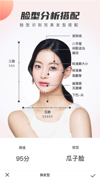 拥有脸型分析的功能,可精准辨别用户的脸型,进而给出适配的发型推荐。
