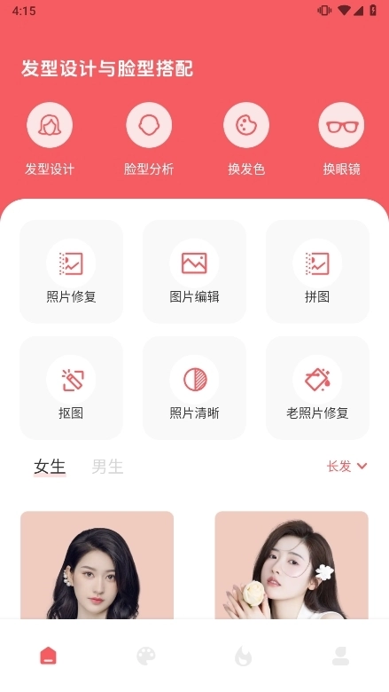 提供丰富的发型库,包括各种潮流时尚发型,如短发、长发、卷发、染发等。