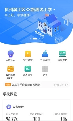 【智能管理助手】借助远程视频评课、通知发布审批、全校师生概况等功能模块,实现管理全覆盖、流程更规范