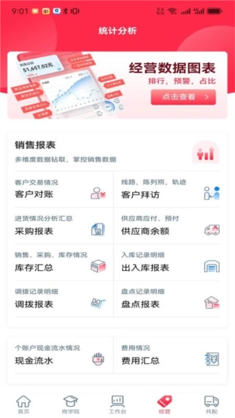5、在经营页面,能够进行数据统计与分析,从而深入掌握经营状况