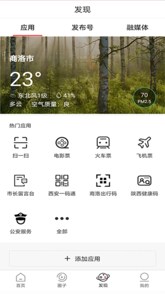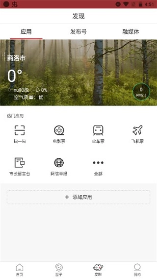 在“发现”版块里,你能找到天气预报、交通查询、火车票购买等各类生活服务。