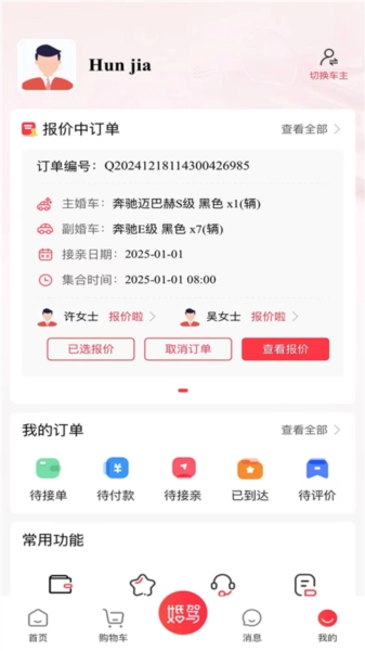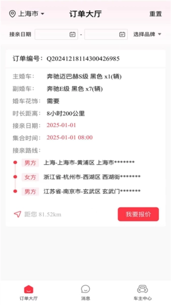 5、成为车主后,可在线接单提供服务,轻松获取接亲订单,还能在线进行报价与客户联系;