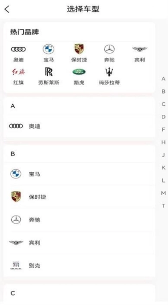 支持以品牌为维度快速检索车辆,助力用户精准定位目标车型,有效节省查找时间。