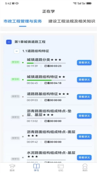 一刻钟学堂是一款专注于社工考证与二级建筑师考证的专业学习服务软件。用户可借助该软件实现随时随地学习,平台提供丰富的精讲知识点供在线选择学习,专业培训的精讲课程也能随时观看,助力用户同步最新教程内容,从而扎实掌握核心知识点,轻松备考。此外,平台还汇聚了海量题库资源,方便用户随时刷题练习,高效复习巩固知识点,强化记忆效果,及时掌握最新考题动态。