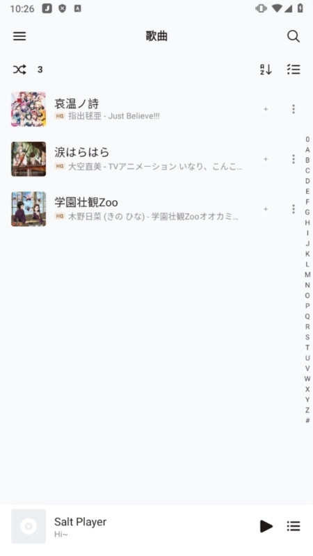SaltPlayer具备自动扫描设备音乐文件的功能,用户也能自行设定需要扫描的文件夹。