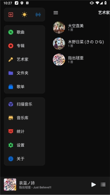支持系统媒体库和指定文件夹的歌曲扫描功能,还能把文件夹添加到黑名单以排除扫描。