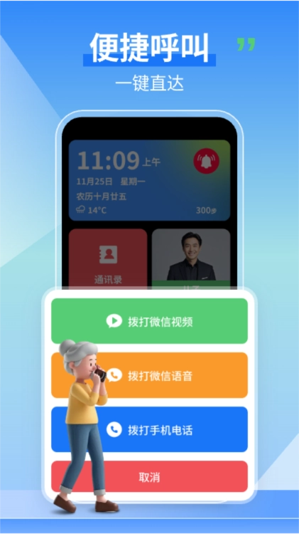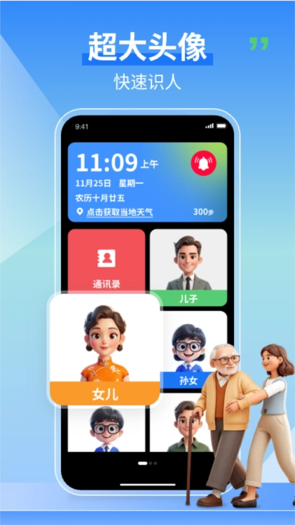 亲情视频通话服务:为老年人简化了视频沟通的操作流程,长辈只需轻点家人头像,就能直接发起通话,再也不用费力去记那些繁琐的操作步骤了。