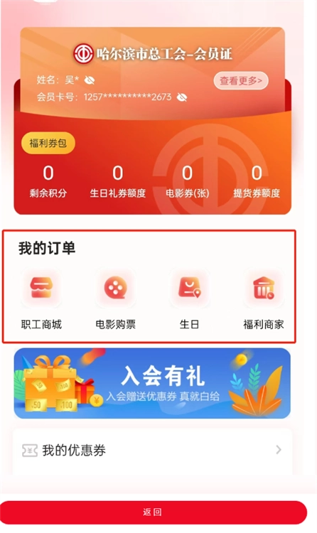 职工会员在活动期间可进入对应页面,领取各类优惠券并存入个人账户或卡包,随后依据活动规则前往指定商户完成核销与使用。