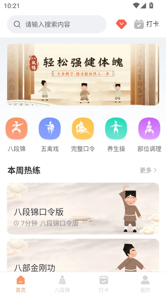 全面覆盖:除了基础的八段锦教学外,应用还包含了其他相关的健身气功项目,如五禽戏、太极八段锦等,满足用户的多样化需求。