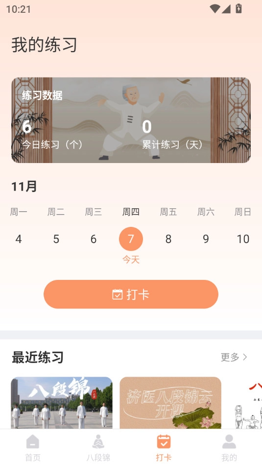 4、在我的练习中可以查看打卡的相关记录,点击打卡按钮即可。