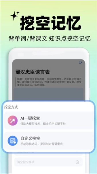 4、用户还能借助智能背诵功能,通过挖空记忆的方式来巩固知识点,打造专属于自己的记忆方案。