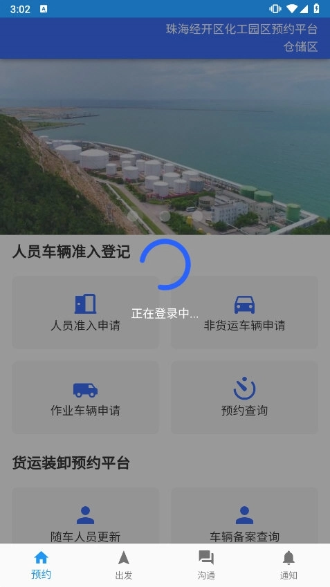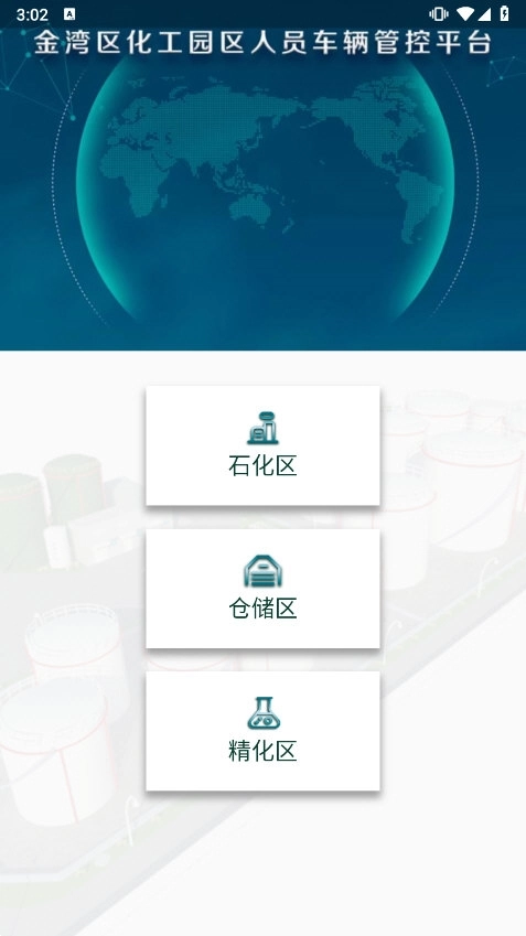登录后,用户需要选择所在的园区(如石化区、仓储区、精化区等)。