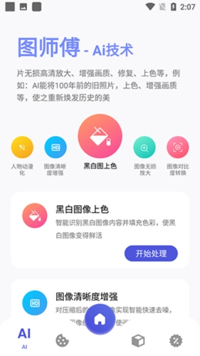 2、点击AI选项,可实现黑白图片上色、老照片清晰度增强等功能。
