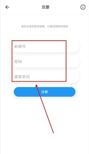 2、接着输入邮箱号和密码这两项内容,之后点击【注册】按钮,就能完成操作了。