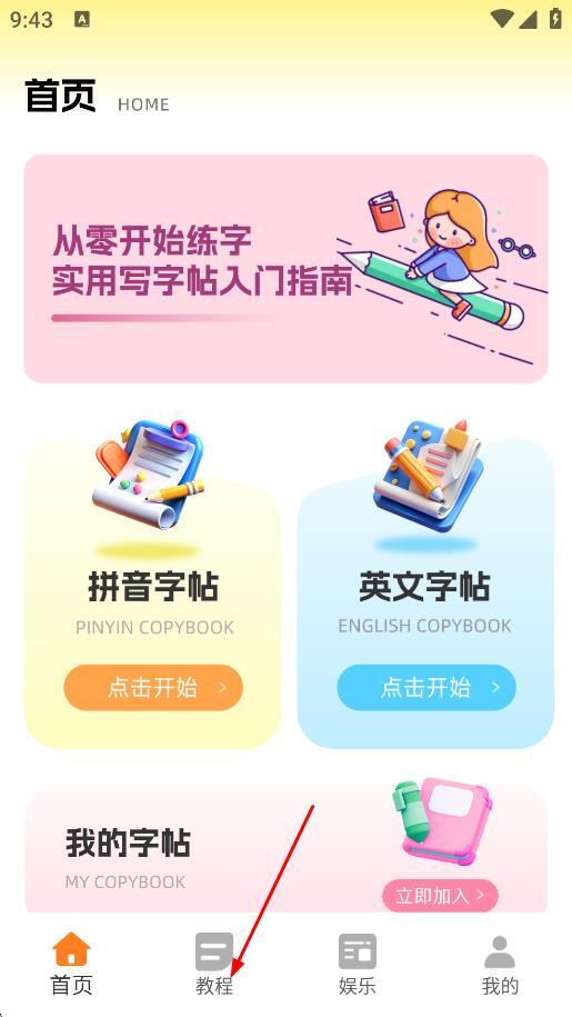 在首页,我们可以点击底部的“教程”选项,进入教程页面。