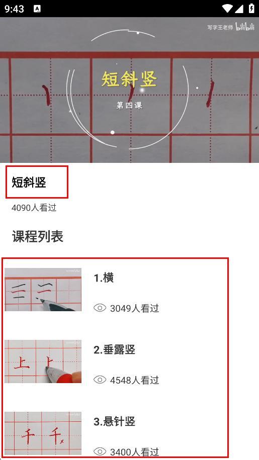 4、在笔画教程的学习页面中,用户能够查看笔画课程以及对应的课程列表,并开展学习活动。