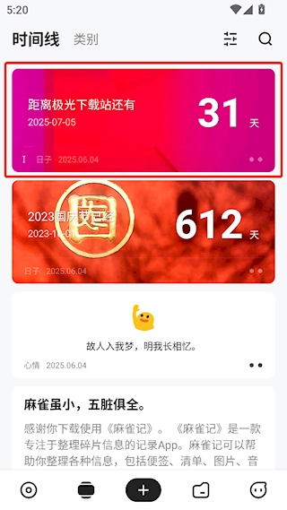 麻雀记是一款用于记录心情与日常事务的工具,这里为大家带来这款简洁实用的记事软件,它能够帮助你整理各类信息,如便签、清单、图片、倒数日、纪念日、心情状态、地址以及链接等内容,方便随时查看与管理。