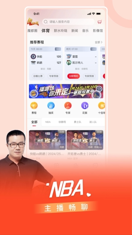 4、NBA赛事激战正酣,精彩持续上演!专业解说大咖在线陪伴互动,带来犀利独到的点评与深度细致的战术剖析,让看球体验更添精彩内涵;