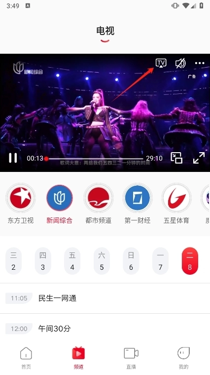 2、点击想要播放的视频,再点击右上角弹出的“TV”按钮;此时百视TV会自动搜索附近可投屏的设备并在手机上展示出来,选择自己熟悉且需要投屏的设备(例如“我的小电视”),就能完成投屏操作。