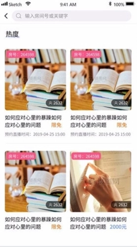 6、元式催眠平台对众多直播预告进行了热度排序,用户可以通过房间号查找目标学习直播房间,并完成直播预约以参与其中。