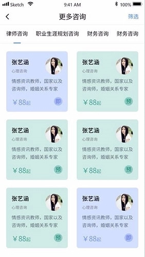 3、平台汇聚了海量的咨询师资源,不同的咨询服务板块下都匹配了对应的大量咨询师。