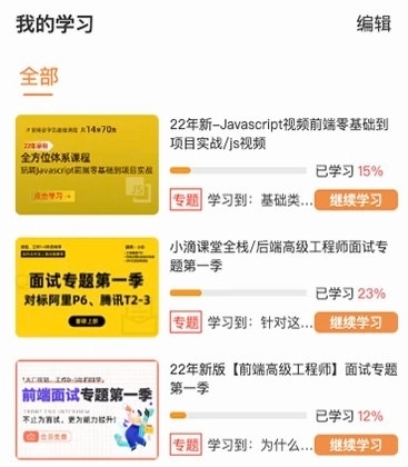在“我的学习”页面可以查看所有课程、项目和测试记录,并且支持导出学习报告。