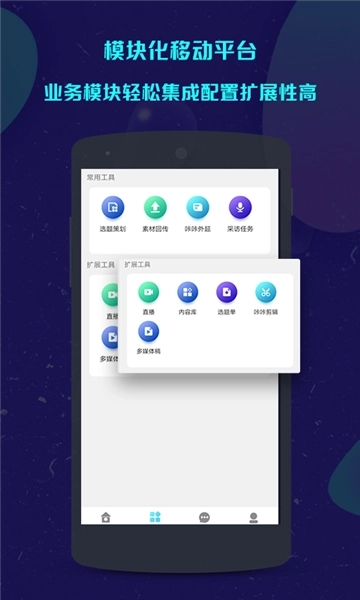 3、本应用支持移动终端模式,主要用于达成以下目标:人员的实时调度与沟通协作,内容的多来源整合、跨平台多渠道分发、任务的追踪与分配,以及互联网线索和本地线索的整合与运用。围绕内容、技术、平台、经营、管理“五个融合”的媒体生产模式,推动电视生产与互联网生产相互补充、深度融合。