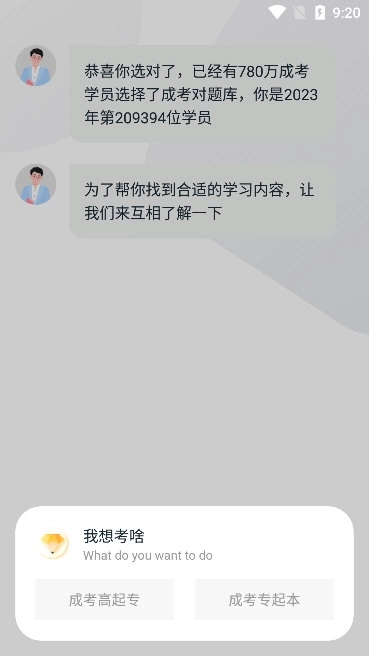 在安装好我的成考刷题软件后,通过手机号接收验证码完成注册流程。登录账号后,依据个人实际需求选定相应的学段和报考专业,系统便会智能推送与之匹配的学习资源。
