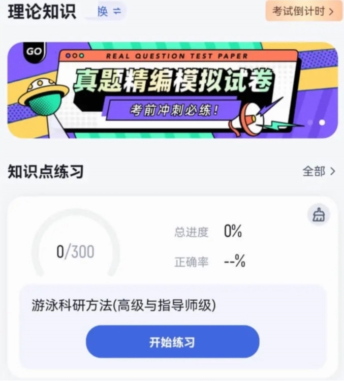 由专业游泳教练考试专家与教育技术人员共同组成的团队,凭借对考试大纲和考核标准的深入研究,融合多年教学及备考指导经验,精心打造了软件的题库与学习内容。