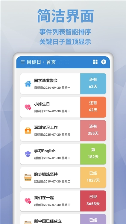 正倒计时切换:用户能够自主选择剩余天数或已过天数这两种显示模式,以满足不同场景的使用需求。