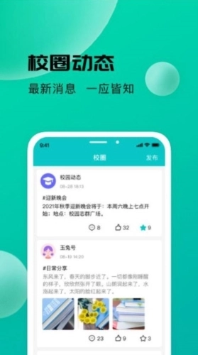 5、动态发布功能:支持发布生活中的各类动态内容,便于用户分享个人的校园生活状态