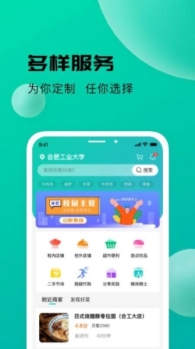 1、校内店铺:通过这里能在线选购校内的各类美食,让购买过程更便捷。